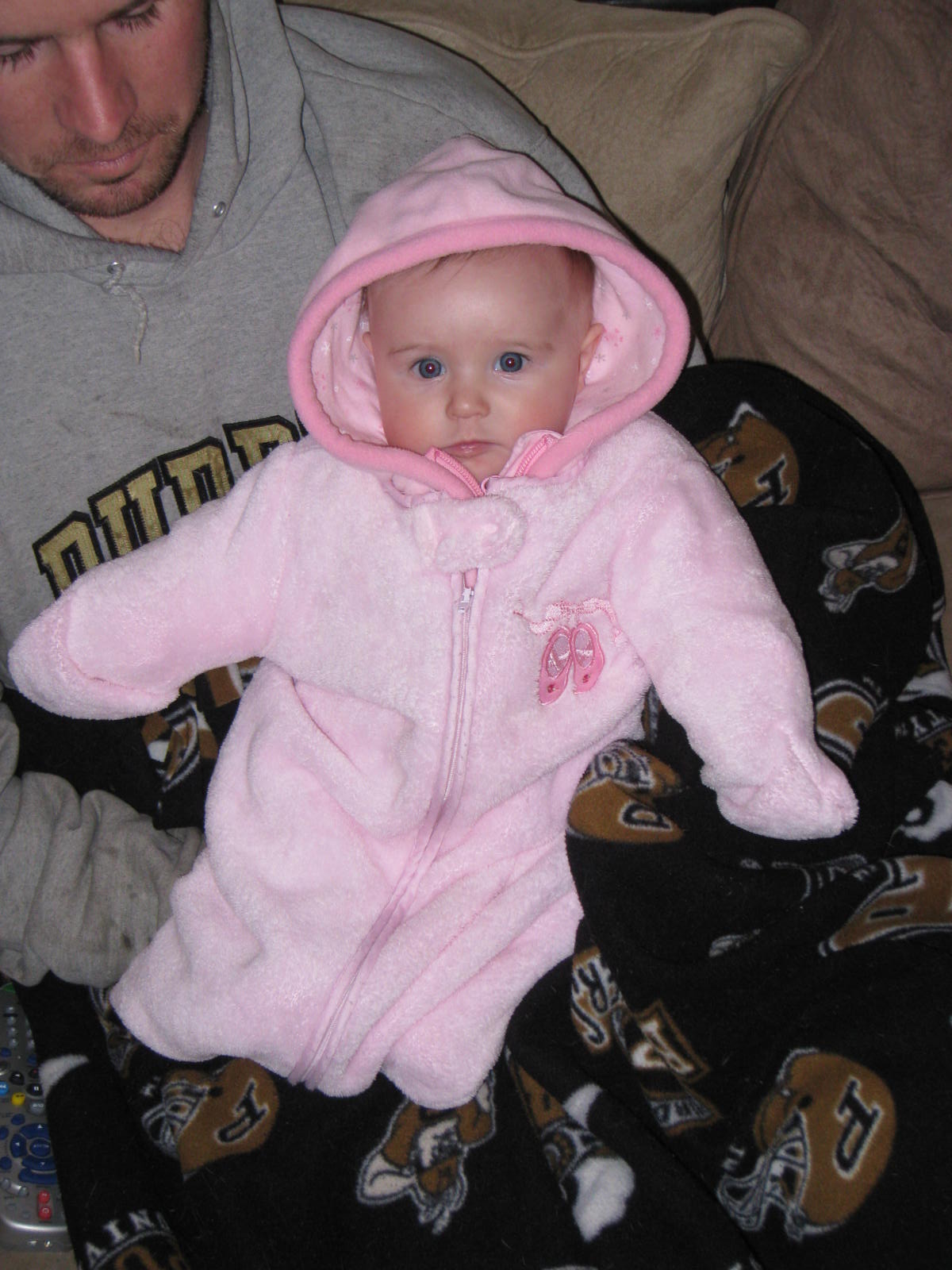 JJ looked like she was getting ready to play in the snow, but really she was getting ready for bed.